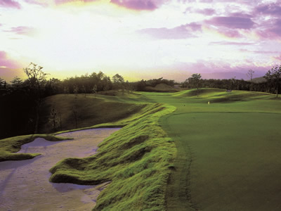 自然の林を巧みに生かした林間ふうの仕上がりで、アンジュレーションに富んだフェアウェイの随所にトラップを設定した戦略的な丘緩コース。
