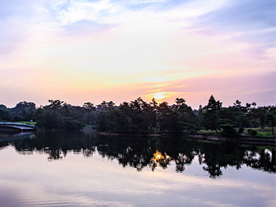 万年池東コースは万年池の周りにレイアウトされた水のコース。個性的な湖畔コースで、特に12番ホールは、全国でも人気の名物ホール。四季折々の美しい眺めと変化に富んだレイアウトが印象的。宇部興産オープントーナメントを主にここで開催していた本格的チャンピオンシップコース。