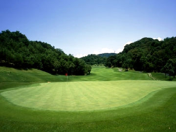 自然林を残したゆるやかな起伏に展開するゆったりとした18ホールです。フラットなレイアウトのなかにも随所に池を配して戦略性を高めている。 最終の18番ホールはメガネ橋がかかる名物ホールとなっています。