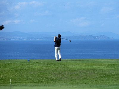 初めて訪れました。HP等で見る海に向かって打ち下ろしのコースは、本当に気持ちが良かった。芝の状態も良かった。コース幅が広く、再度は隣のコースでOBゾーンが少ないため、初心者におすすめのコース。遠くから来たかいがありました。