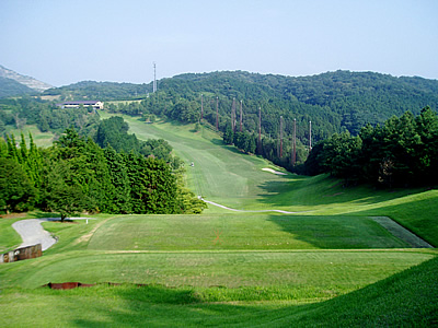 竜王山の中腹に展開する18ホールズ。コースの距離は長くないが戦略性が高く、正確なショットが要求される。
