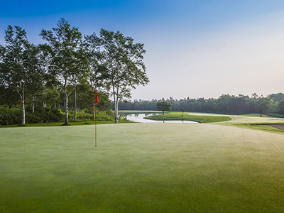 名物ホールはフェアウェイ右にグリーンまで池が続く6番。
