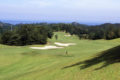 東シナ海に向け豪快に打ちおろすロングホールからスタート。2番ホール右にはチャーチバンカーが美しいコントラストを見せてくれる。
